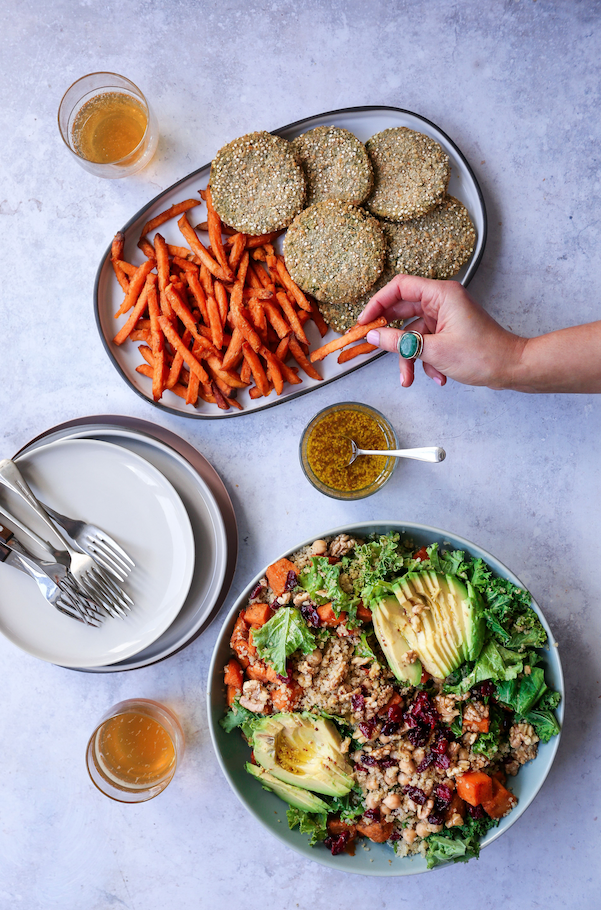 Versez la vinaigrette et servez avec les Kale & Quinoa Crush et les Sweet Potato Fries.